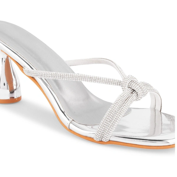 Featuring dazzling silver diamond strips heels slippers